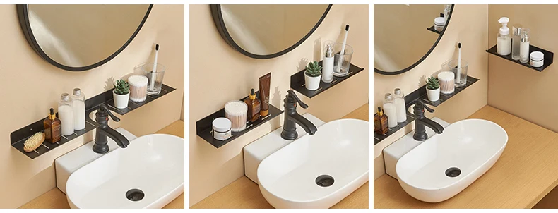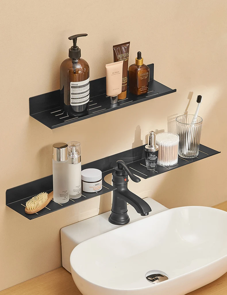 Shower Caddy Shelf Organizer Rack Self Adhesive Black Bathroom Shelves Wall Mount Shower Storage Home Organization RvAccessories