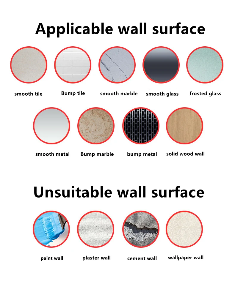 【Applicable to All Walls】You can install it on any smooth wall, and it works on almost any bathroom wall, so you can buy with confidence without worrying about inapplicability