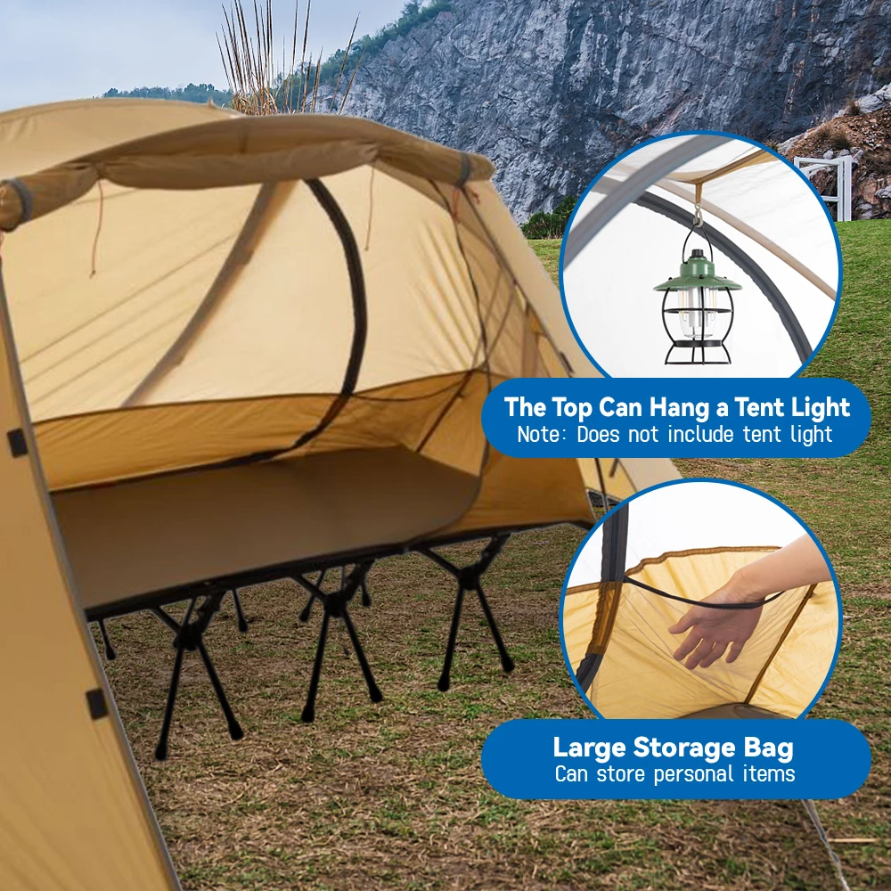 Lightweight 1-person folding bed mountain tent, waterproof and stable, elevated sleeping platform, providing a comfortable outdoor experience.