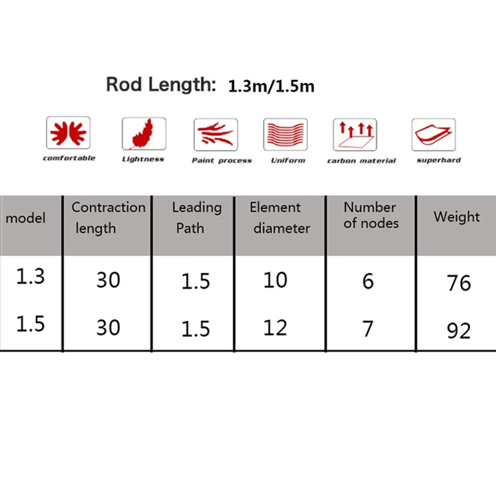 Rod length :1.1, 1.3, 1.5m