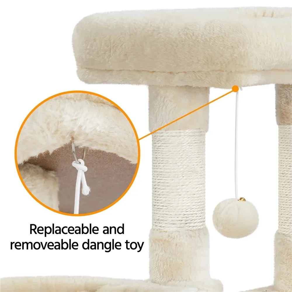 Professional Cat Tree Plush Cat Tower with Basket for Indoor Small Kittens, Beige: