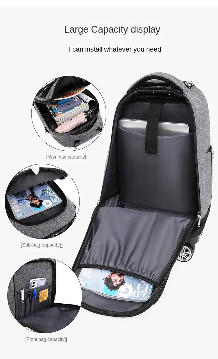 Travel Suitcase Trolley Backpack With wheels Large Capacity Wheeled Bag School Backpack Rolling luggage Laptop Business Luggage