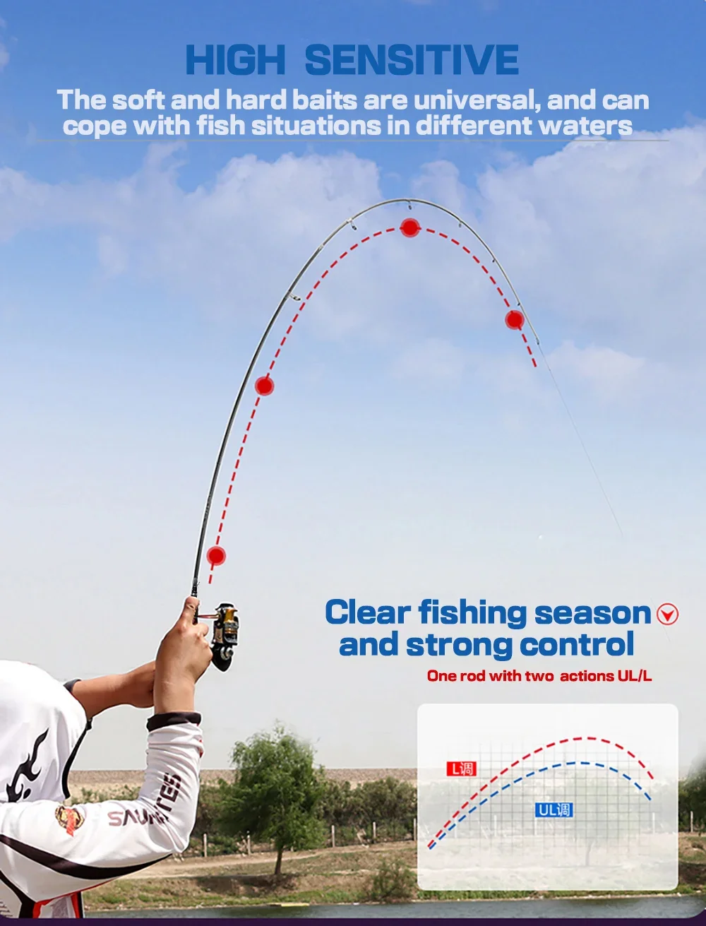 UL Action Travel Spinning Fishing Rod1.68/1.8m Lightweight Carbon Fiber 2 Section Fishing Pole Outdoor Portable Casting Rod
