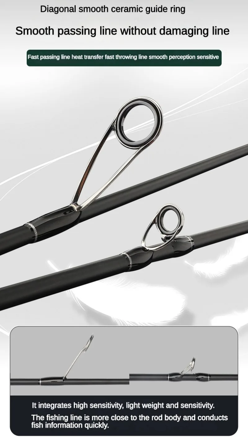 1. High-sensitivity one-piece grip, triangular one-piece grip, clear perception, penetrates the whole body, improves conduction sensitivity, and prevents fish from running away