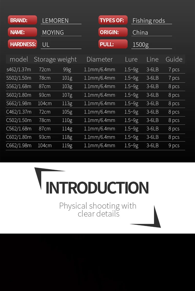 Ultra-Light Fishing Rod Carbon Fiber Spinning/Casting Lure Pole Bait WT 1.5-9g Line WT 3-6LB Wood Handle Fast Trout Fishing Rods
