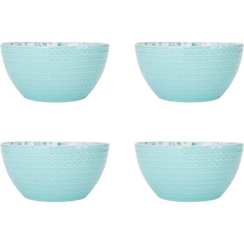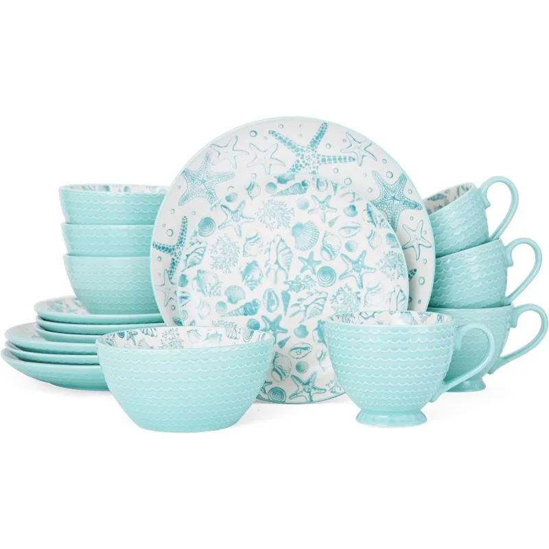 Venice 16-Piece Stoneware Dinnerware Set, Service for 4, Aqua/White -