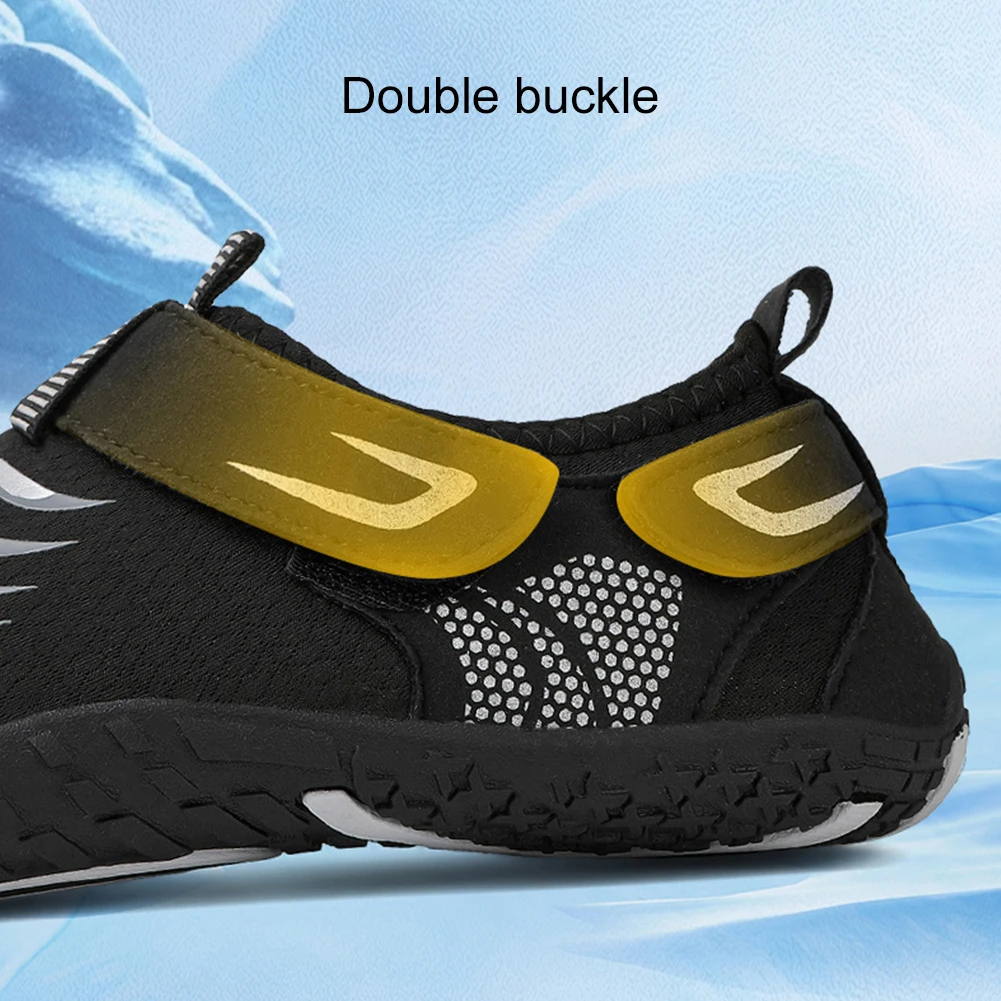 4.Ultra-Lightweight and Durable Rubber Outsole: The swimming shoes feature an ultra-lightweight and durable rubber outsole that offers long-lasting performance. The rubber material provides excellent grip and traction, giving you confidence and stability during outdoor activities such as hiking, climbing, cycling, swimming, or stream trekking. The dual slip-resistant features of the outsole ensure maximum safety on both wet and dry surfaces, allowing you to enjoy your favorite sports or adventures worry-free. Trust in the durability and reliability of our shoes, designed to withstand rigorous activities and prolonged use.
