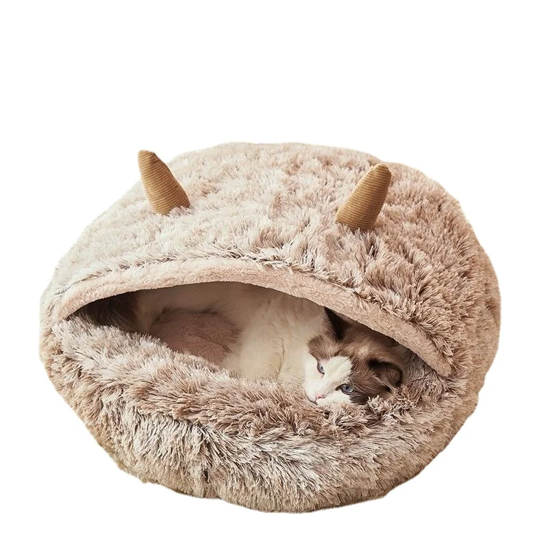 Winter Long Plush Pet Cat Bed Round Cat Cushion House Warm Cat Basket Cat Sleep Bag Cat Nest Kennel 2 In 1 For Small Dog Cat