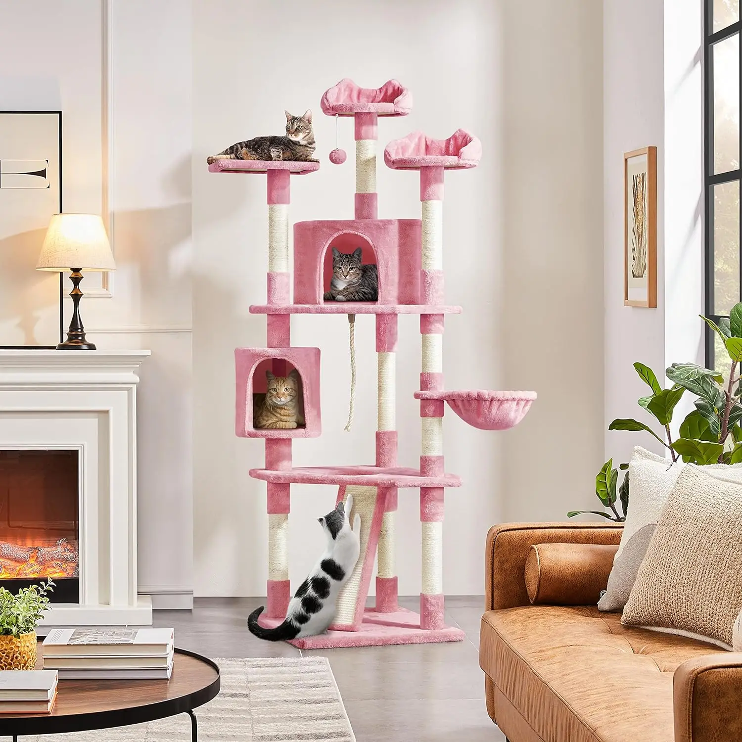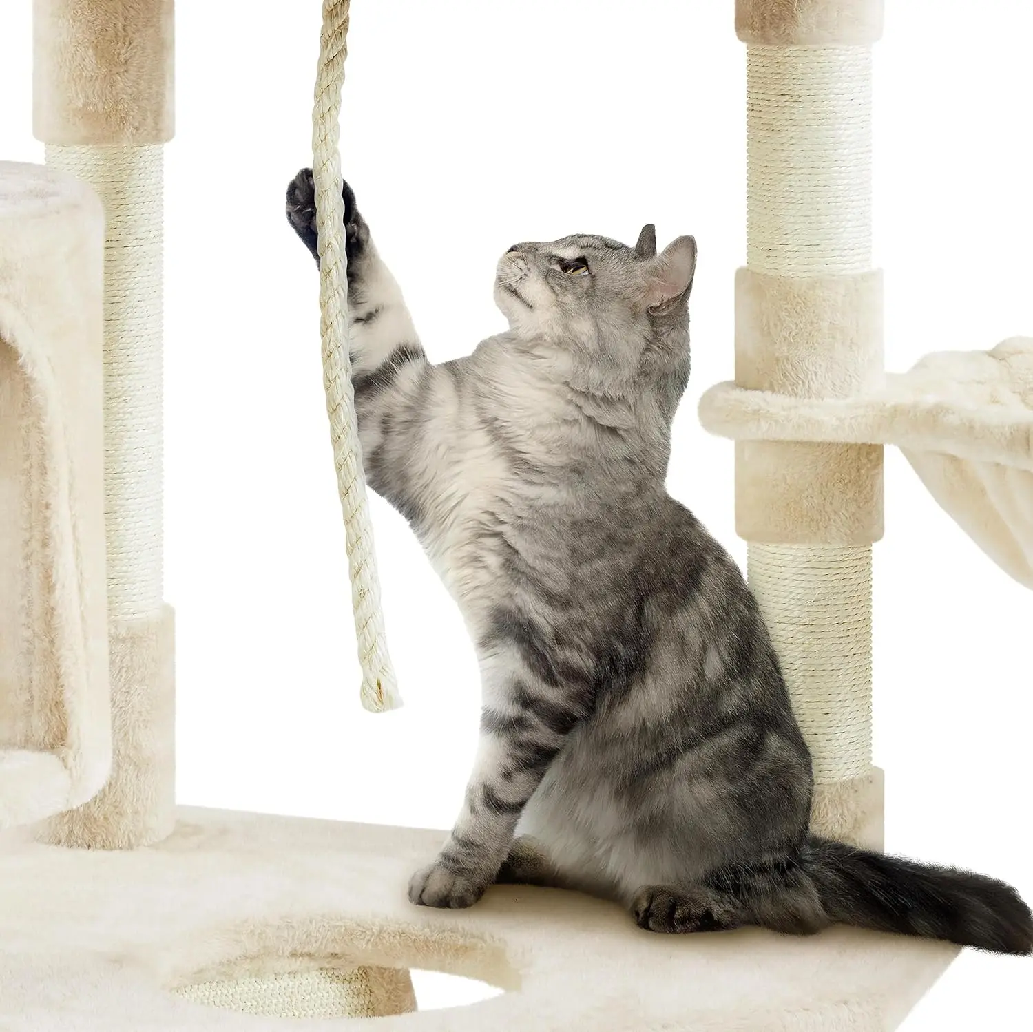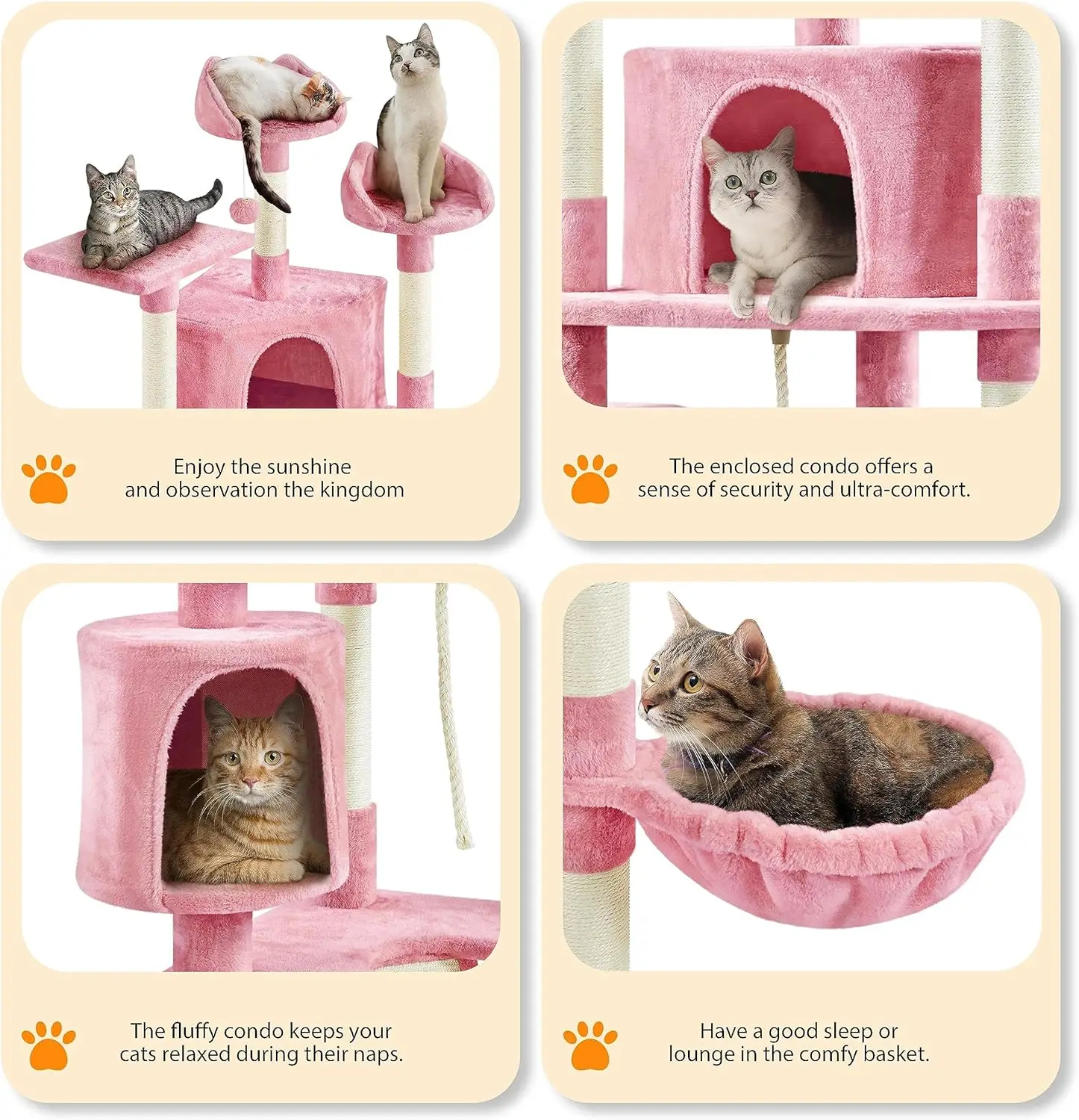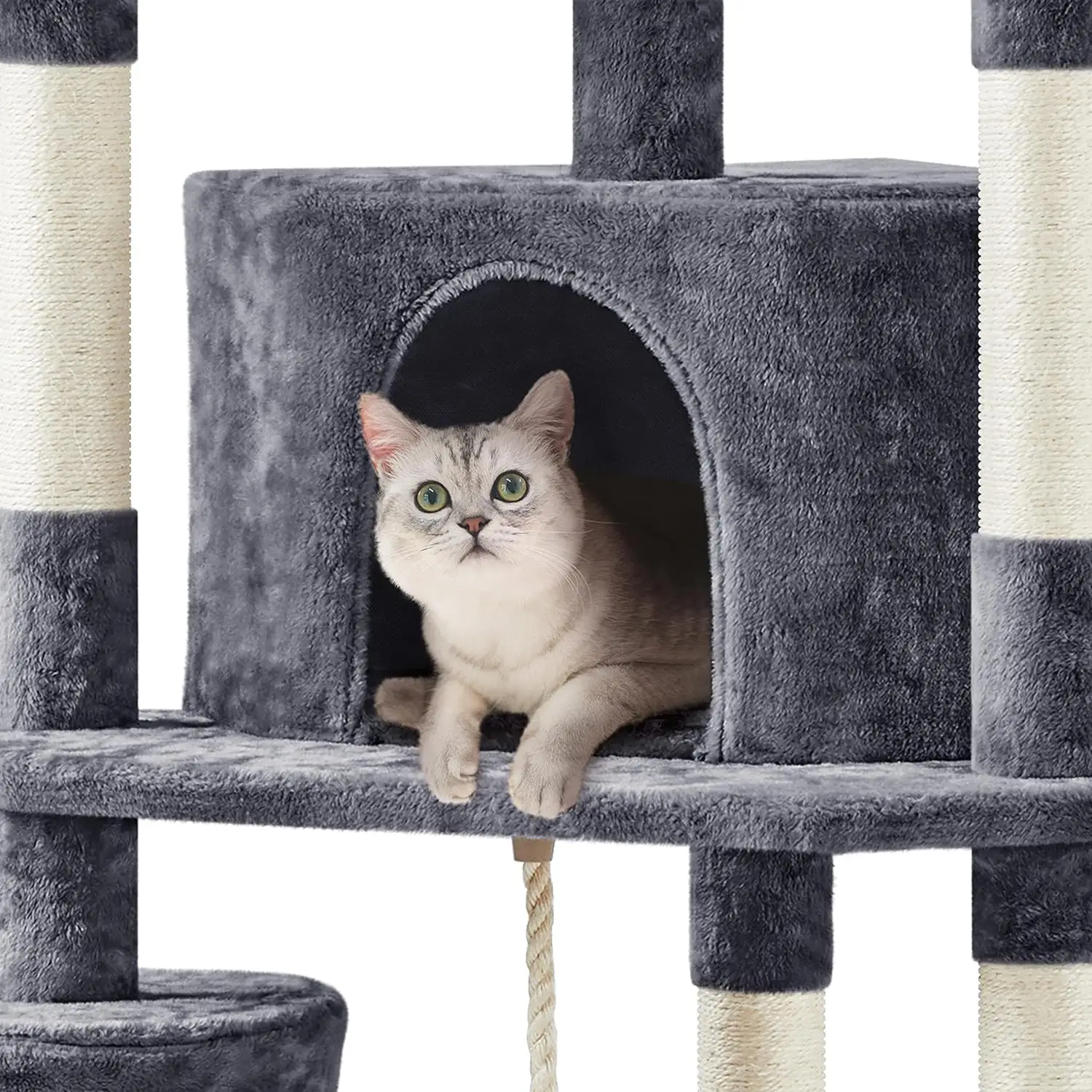 - 【Pet-friendly Materials】 Crafted of pet-safe manufactured wood and soft plush fabric covering, the tall cat tree tower will provide your beloved pets with a safe living and playing space.