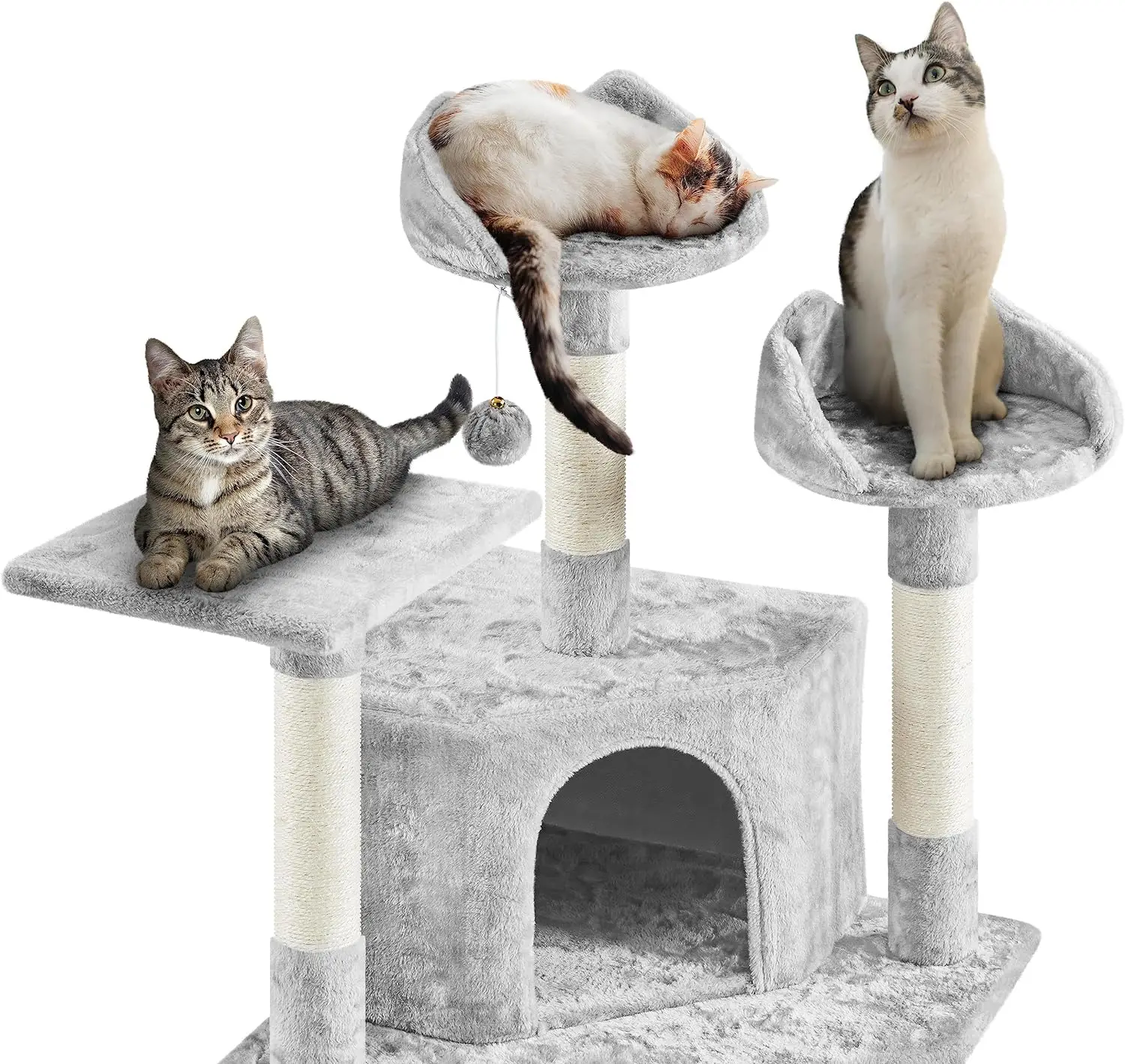 - 【Suitable For Small- to Medium-sized Cats】This cat tree is designed for 3-4 small- to medium-sized cats (e.g., Siamese, Exotic Shorthair, Devon Rex, and Abyssinian) weighing 10 lb and under.