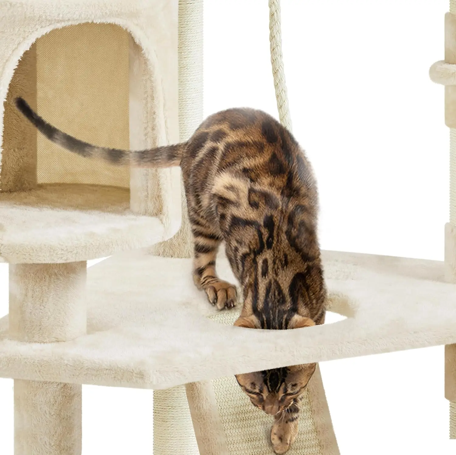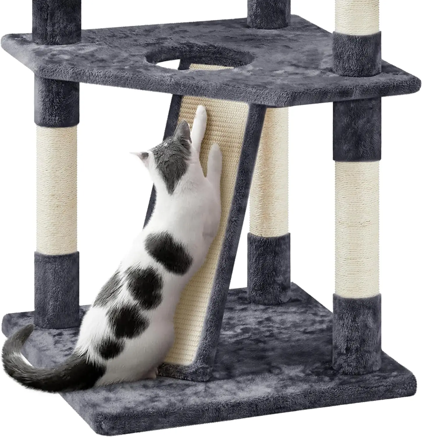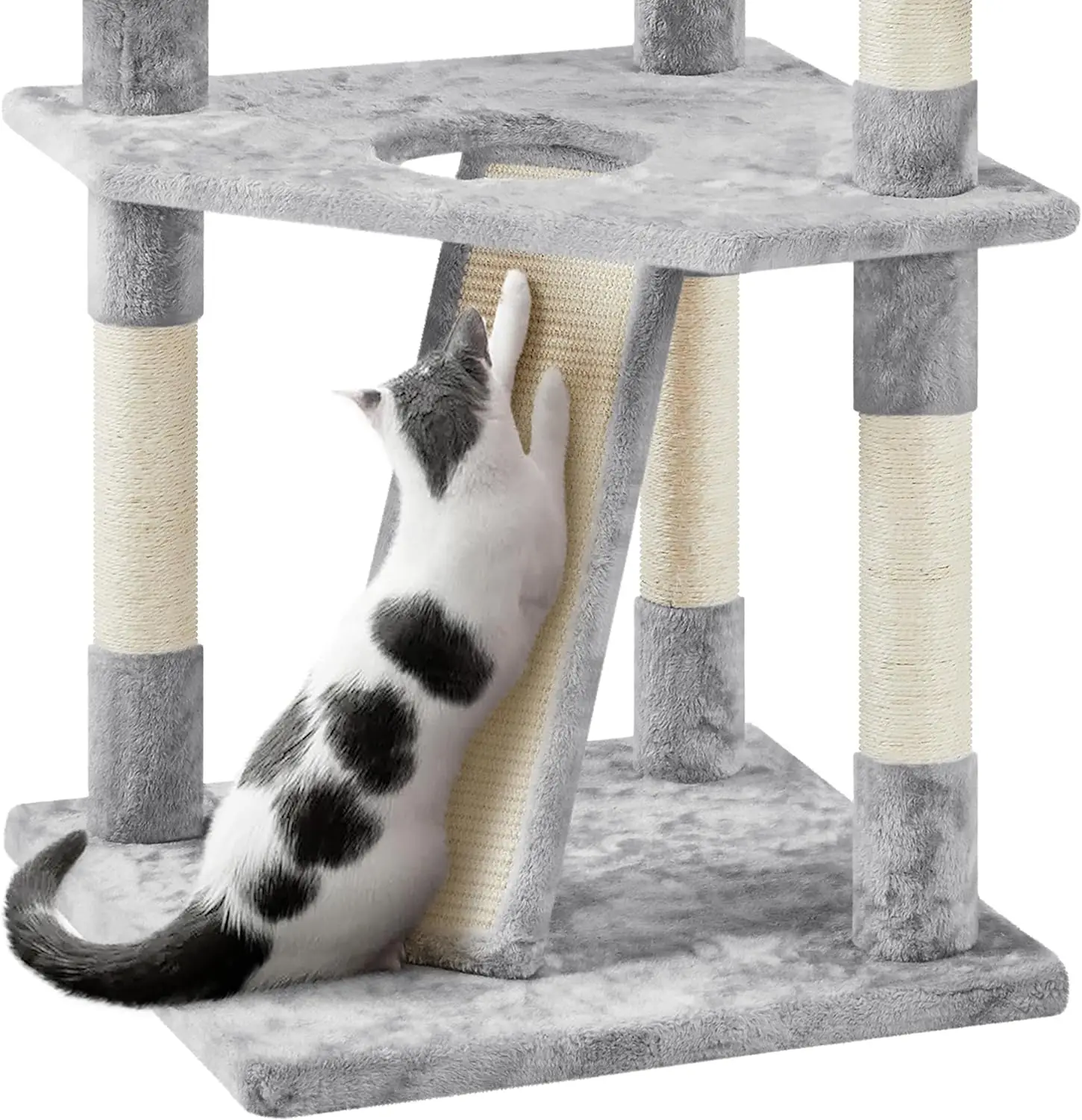 - 【Cat's Activity Center】 9 scratching posts encourage positive scratching behavior and meet different scratching preferences. The corrugated sisal ramp and the dangling sisal rope above the ramp give cats another fun place to stretch and scratch.